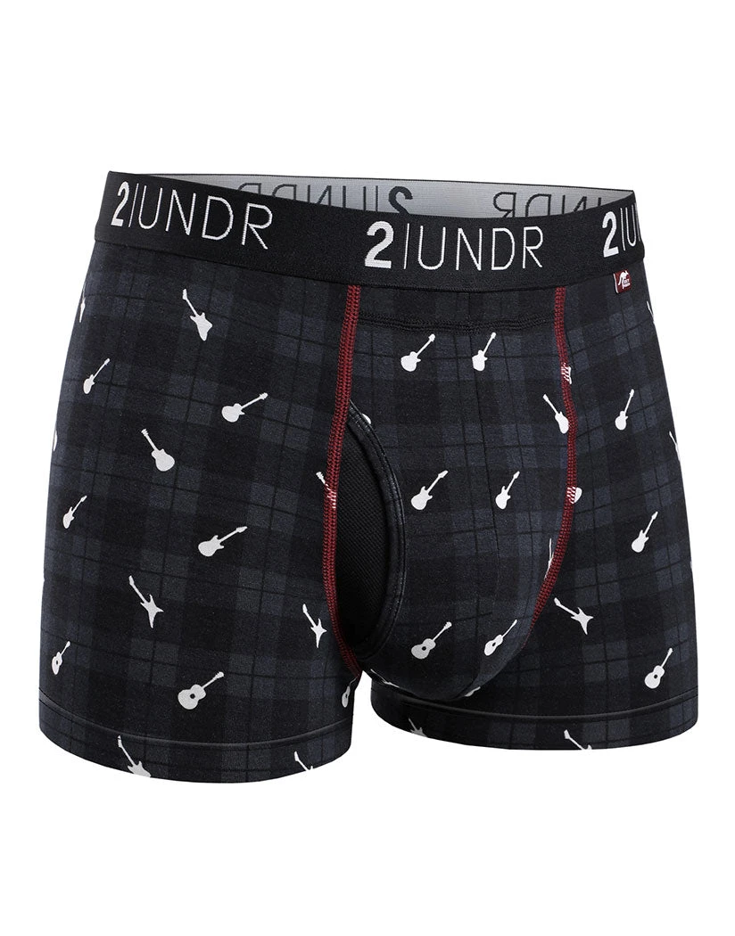 The Swing Shift Trunk from 2UNDR is a square cut trunk, 3 inches in length. It is made of a soft and smooth fabric that feels cool to the touch. This fabric is also durable and resistant, maintaining its quality after many washes and wears. Featured on the elastic waistband is the repeating 2UNDR logo.