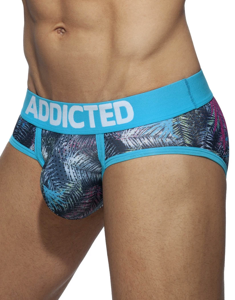 The Addicted 3- Pack Tropical Mesh Brief Push Up is a cool and comfortable pair. The brief style underwear is made of fun printed fabric with color contrast. Its mesh material is breathable and super soft. This brief falls below the waist with a thick, exposed elastic waistband that has Addicted’s logo printed across. Its push-up pouch provides lift, definition and a flattering boost. The moderate coverage rear keeps you comfortable. The brief comes in a convenient three-pack, and is perfect to pack for a vacation!