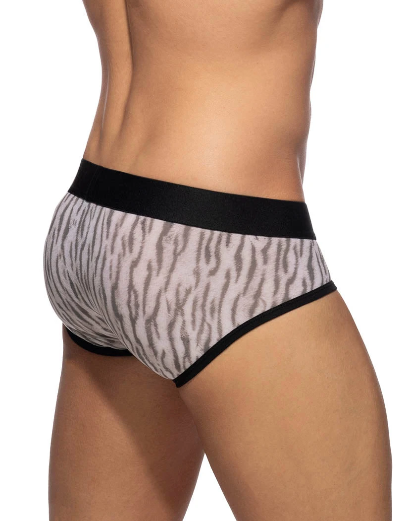 The Addicted Tiger Print Brief is made of thin, stretchy material that moves with you. Itβs patterned fabric and color contrast trim are ultra stylish. This brief has a low rise, exposed microfiber waistband to hold you up. The pouch has PUSH UP technology for structure, support, and enhancement. The brief has a full coverage rear, providing you with modest comfort throughout your day.