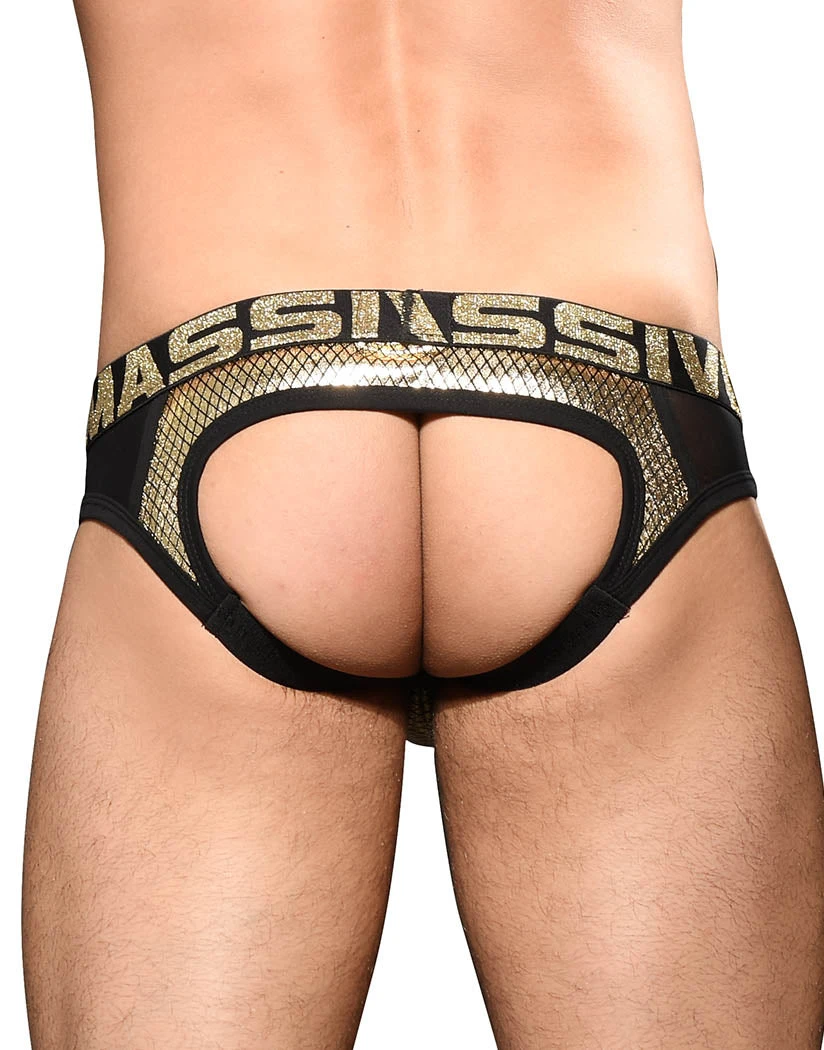 The Andrew Christian MASSIVE Golden Mesh Jock is a ‘bad guy’ inspired jock that will have you living on the dangerous side. The shimmering gold material and the MASSIVE waistband bring all eyes to you! The four-way stretch mesh fabric and the anatomically correct pouch will make this the most comfortable jockstrap yet. No chafing or irritation and the breathability and stretch you need. Shop this limited edition style now!