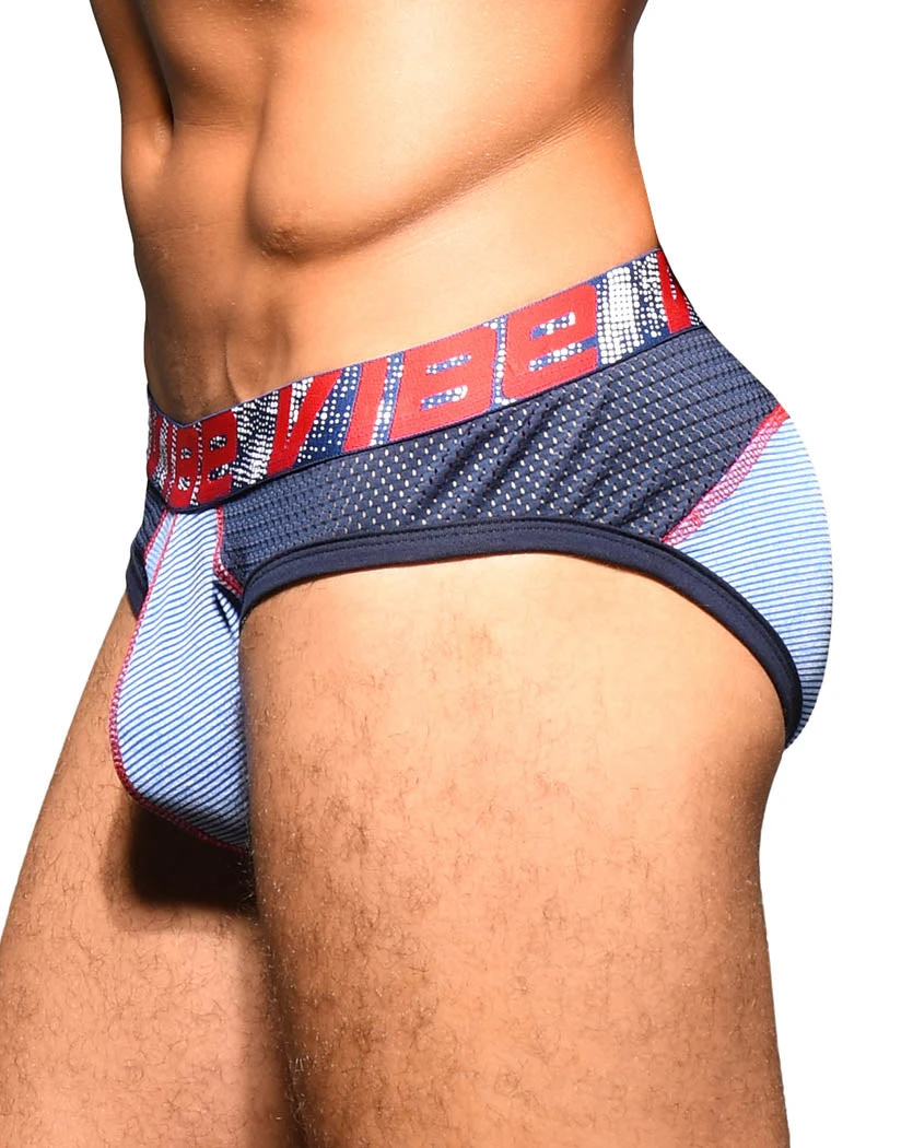 The Vibe Stripe Sports Mesh Brief is both sporty and sexy. The brief style underwear has printed fabric with color contrast details. Mesh details keep you cool and stylish. The hang-free pouch supports you while eliminating squishing, squashing, and other irritation. The signature slimming waistband falls below the waist for a figure-flattering fit, while the moderate coverage rear provides security. This brief is limited edition, so show now!