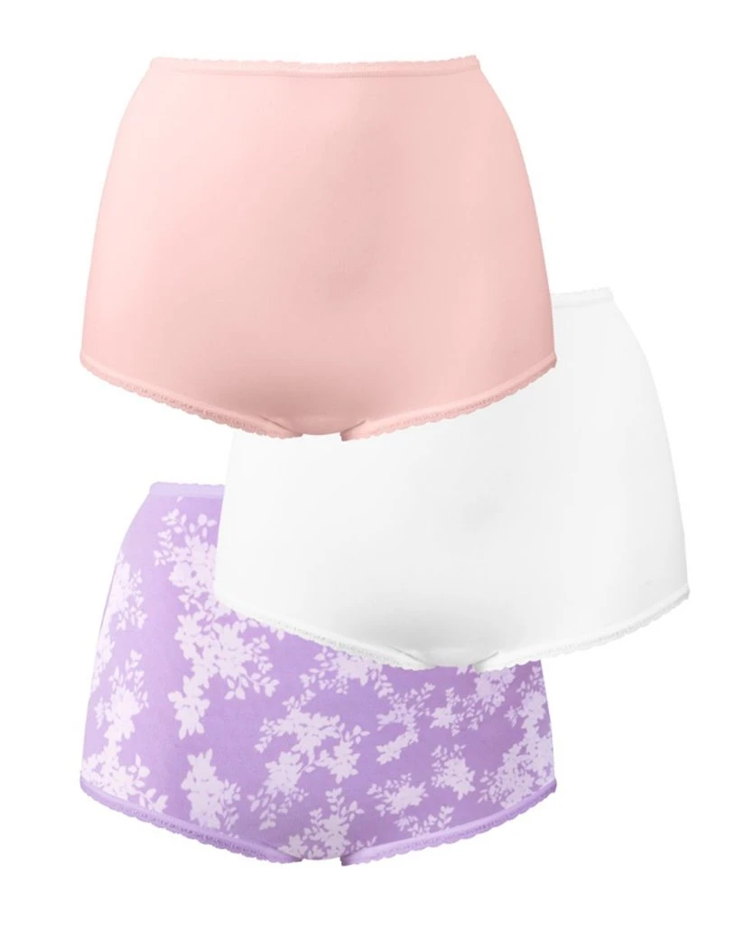 The Bali Skimp Skamp Full Brief Panty 3-Pack are perfect when you want full coverage with a slight boost. These panties sit above the natural waistline and have a bias cut for superior fit. Move freely with no restrictions thanks to a nylon and spandex blend that promotes flexibility. A convenient back seam subtly shapes your rear, while seamless sides ensure a smooth look under clothes. Contoured back legs won’_t ride up, so you can focus on your Dy rather than uncomfortable panties. A helpful 3-pack lets you stock up on these basic essentials.