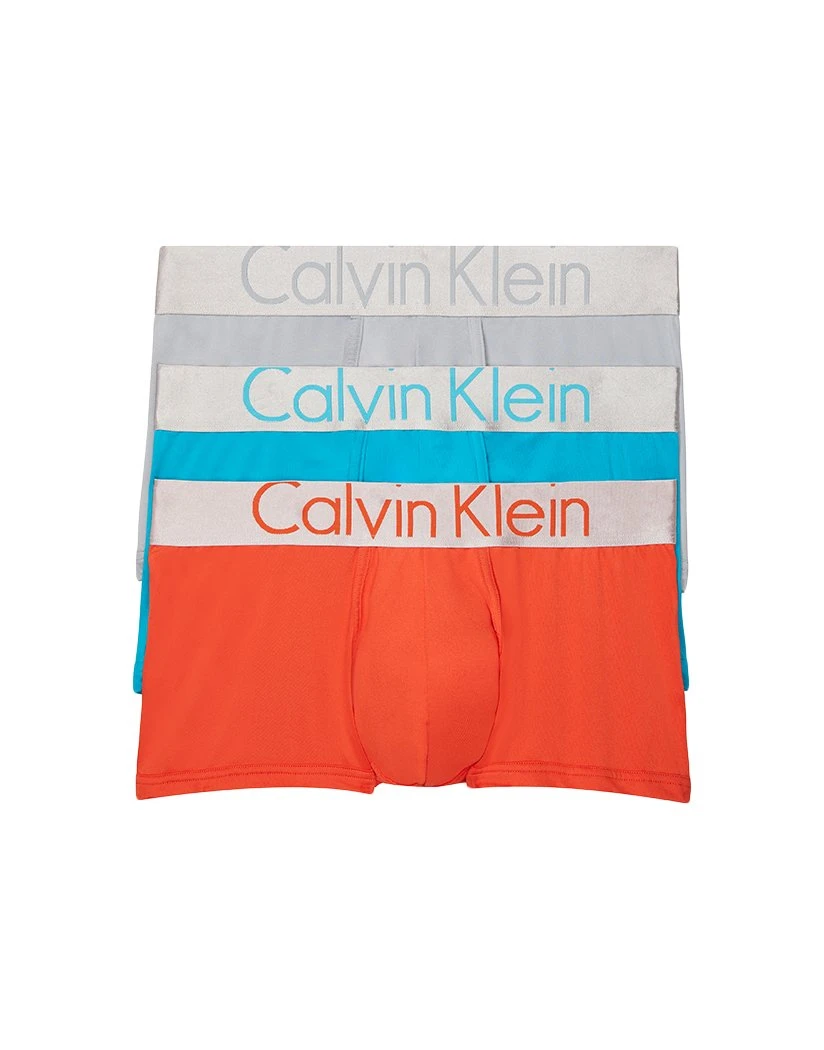 The 3-Pack Steel Micro Low Rise Trunk from Calvin Klein blends classic style with modern comfort. Stock up with ease with this traditional 3-pack. A contour pouch provides an increased level of support, while flat lock seaming offers additional comfort. These male trunks feature a body defining fit, for that feel-good fit. Metallic details add a touch of elevated style.