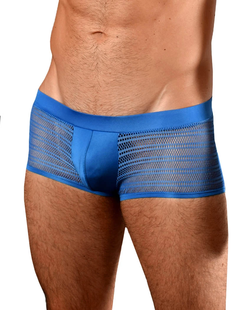 The Doreanse Mesh Trunk is exciting and fun. The trunk style underwear’s materiel is sheer and colored mesh. The elastic waistband is flat and colored the same as the mesh below it. The pouch is a solid colored, non sheer materiel for modesty and is contoured for comfort. The back is full coverage but completely sheer and the trunk falls low rise for an appealing fit. The leg openings have solid trim on them. This unique trunk is sure to make a statement.