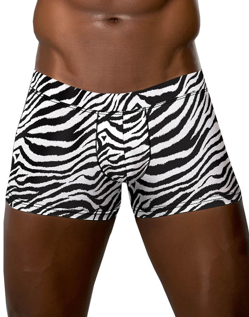 The Doreanse Zebra Boxer is comfortable and smooth. This boxer style underwear has animal print fabric that is sure to draw attention. The boxer is seamless and tag free for an effortless feel. The low rise waistband is covered so that pattern is not disrupted. The double layer pouch with vertical seams provides shape, support and definition. The full coverage boxer is a great everyday option for a touch of fun.Â
