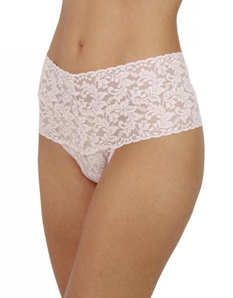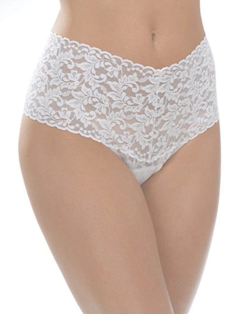 From the makers of The World’s Most Comfortable Thong, the Hanky Panky Signature Lace Retro Thong has all the sexy, lacy makings of the original Hanky Panky thong, loved by women everywhere, but with an extra wide waistband to tame your tummy a bit. It’s a thong dream come true! The stretch lace fabric glides across your curves to form a perfect snug fit that lies flat and smooth. If you love the sexy, lean fit of a thong, you’ll go nuts for the extra figure-flattering benefits this Hanky Panky retro thong offers.