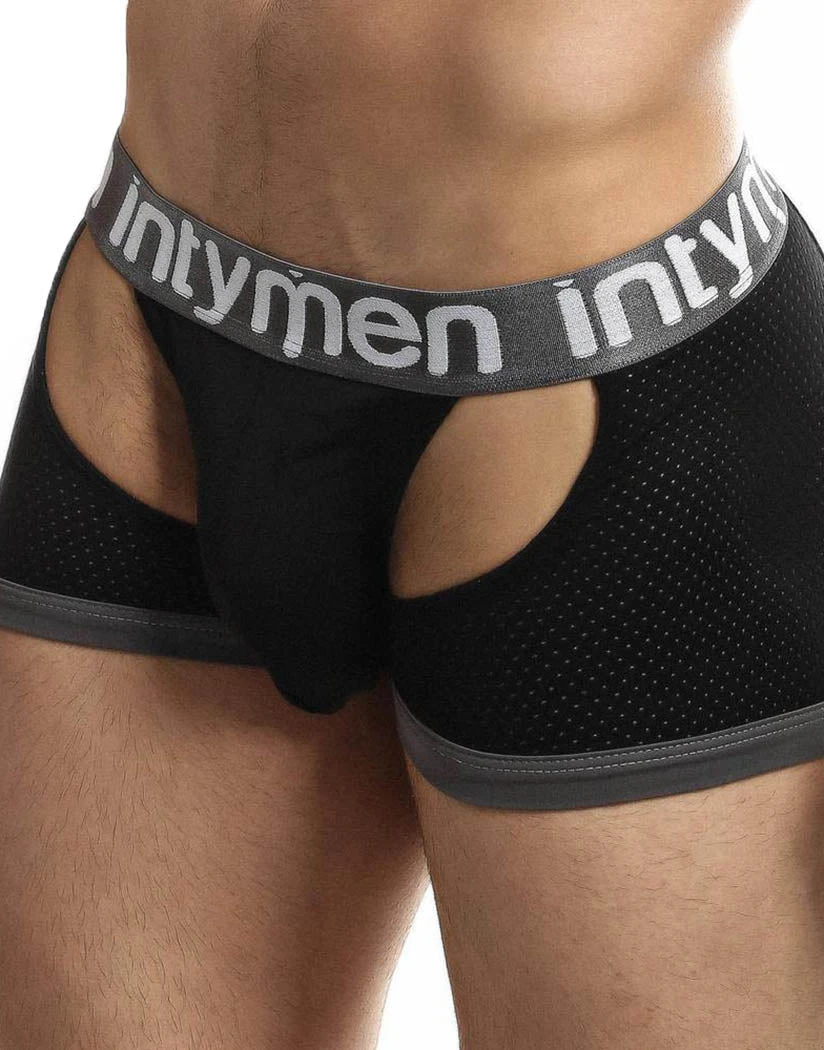 The Intymen All Out Jock is a unique pair of underwear. This jockstrap style underwear is made of mesh fabric with leg reinforcement on the front and back. These breathable legs with cut-out details give this underwear the look of a sexy trunk or boxer brief. A smooth pouch keeps you secure while a low rise, exposed elastic waistband holds you up. This jockstrap comes with a classic fully exposed rear, with the legs underneath it providing a flattering boost. You won’t find this special trunk anywhere else.