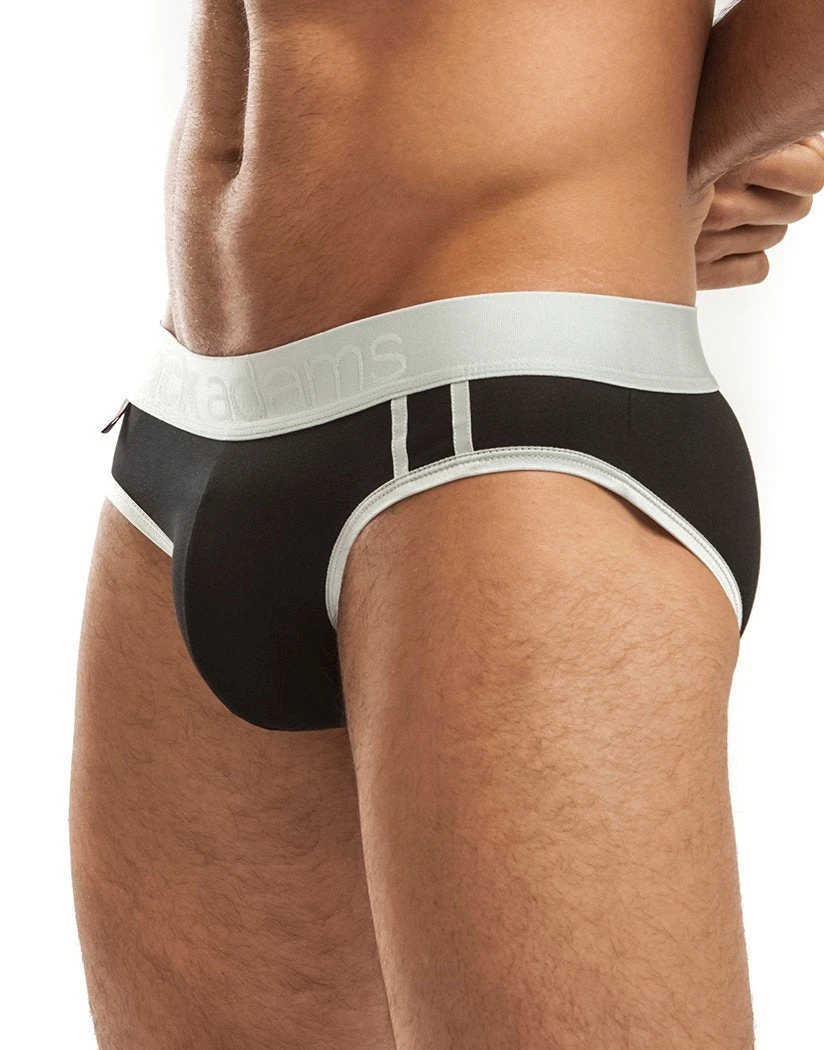 The Lux Brief is a luxurious and sleek pair of underwear. This brief is constructed from a smooth, cooling, and moisture wicking modal fabric, that resists shrinking, pilling, and fading. Featured on the front of this design, is a supportive contour pouch, and contrast colored vertical stripes down the front of the legs. A wide, elastic waistband in a contrast color features the Jack Adams brand name logo. With a body hugging fit, these underwear are not only comfortable, but flattering, too!