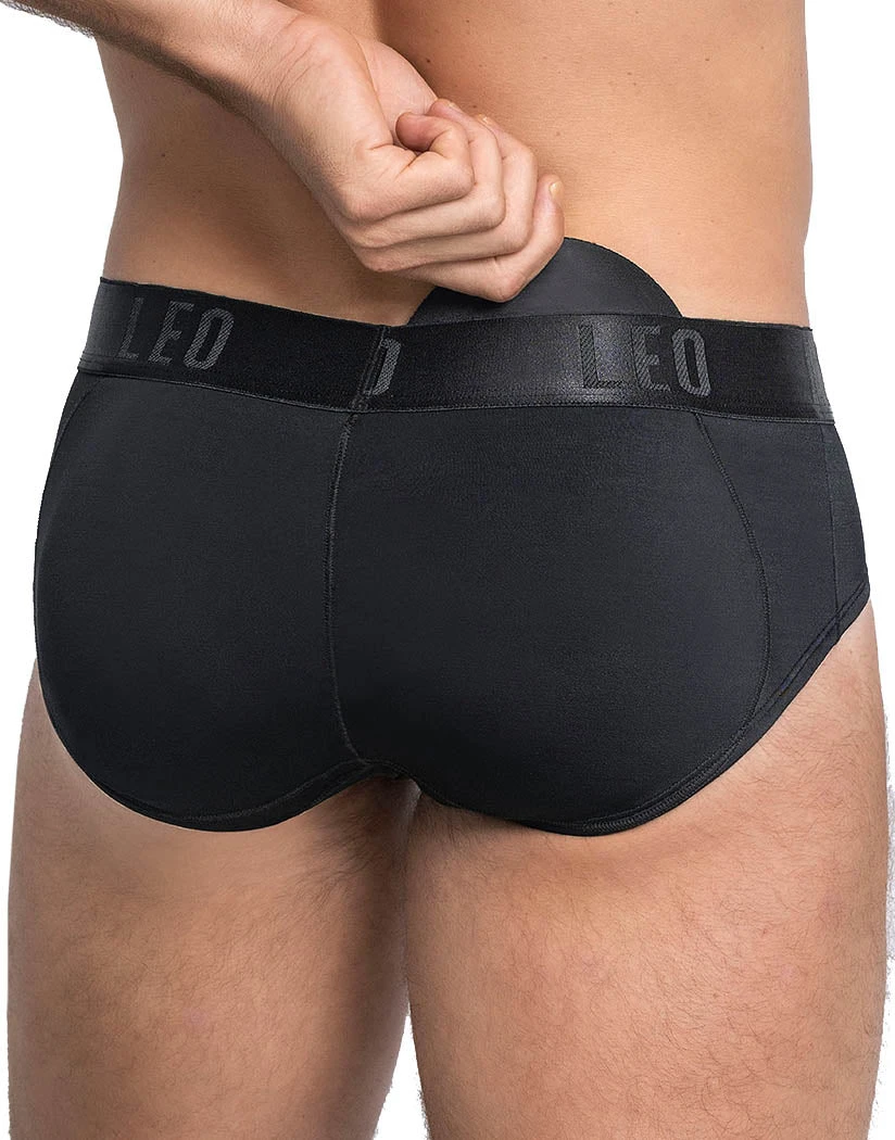 Look naturally photo-shopped with an enhanced butt! This Leo men’s padded butt enhancer brief has all the benefits of a regular brief, but with removable contour padding and a special design to lift your butt. Wide waistband lies flush for comfort. Made of a fabric that is fast-drying and fits perfectly. Supportive pouch lifts and protects. Special design with inner PowerSlim fabric lifts rear without padding.