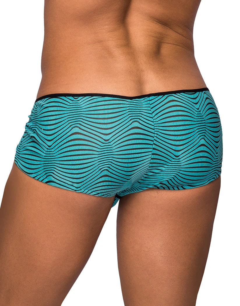 The Male Power Tranquil Abyss Micro Mini Short features a festive micro mini short in a vibrant zebra inspired in zebra-inspired print with swirling black mesh stripes. An ultra low-cut waist, high-cut legs, and enhancing nylon trim on the waist and pouch create the ultimate look that is oh so sexy. All way stretch fabric with smooth spandex trim allows for a comfortable and stylish look.