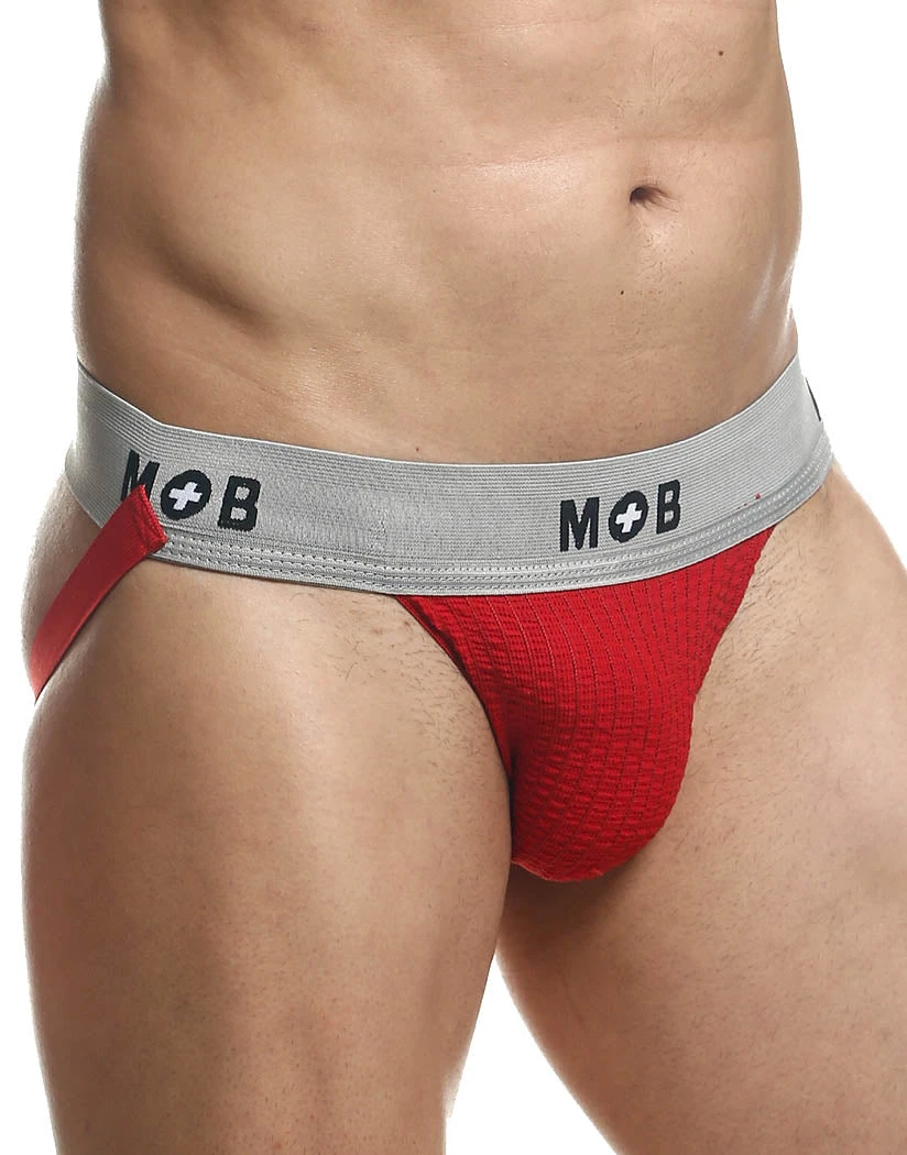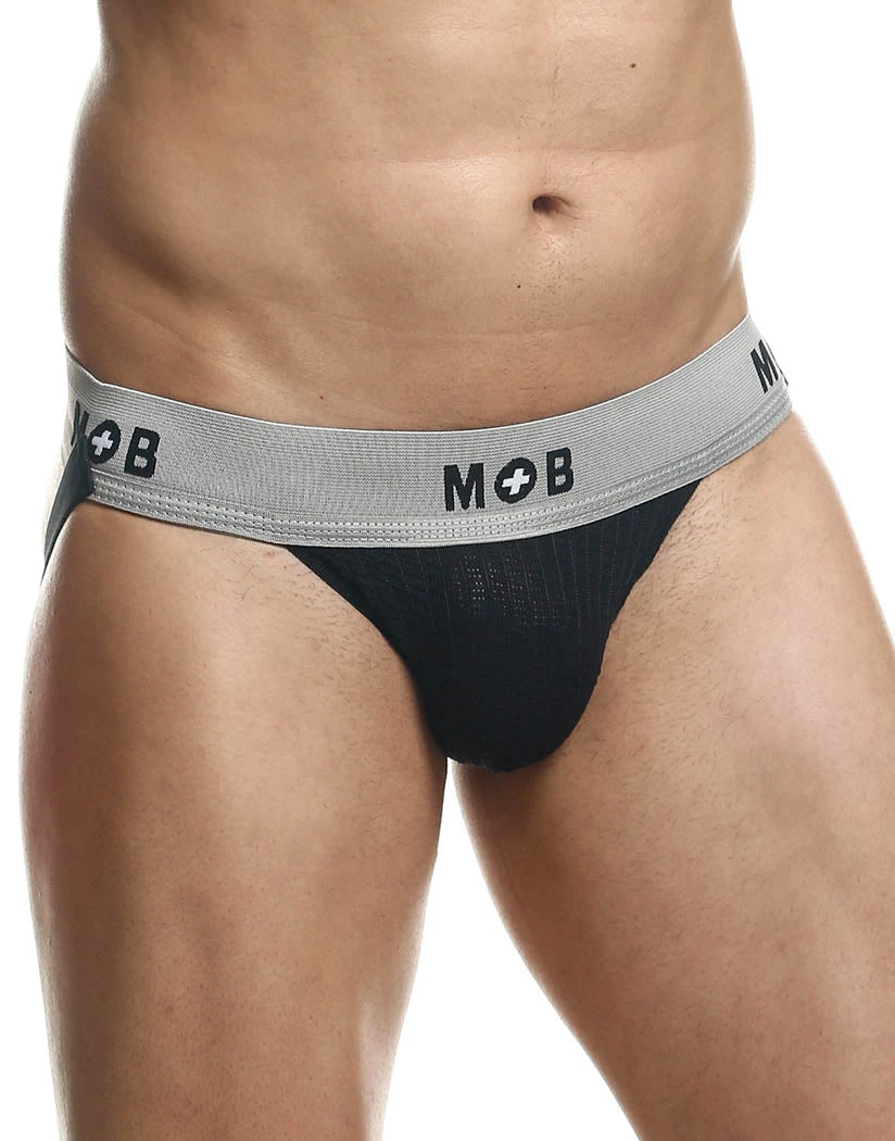 The MOB Classic Fetish Jock is a special style created for advanced protection. This jockstrap is made of soft, breathable fabric. The jock has comfort stitching to prevent chafing, rashes, itching and more. The low rise waist is held in place by a wide, exposed elastic waistband. Soft elastic back straps secure the fully exposed rear for a boosted, protected feeling.