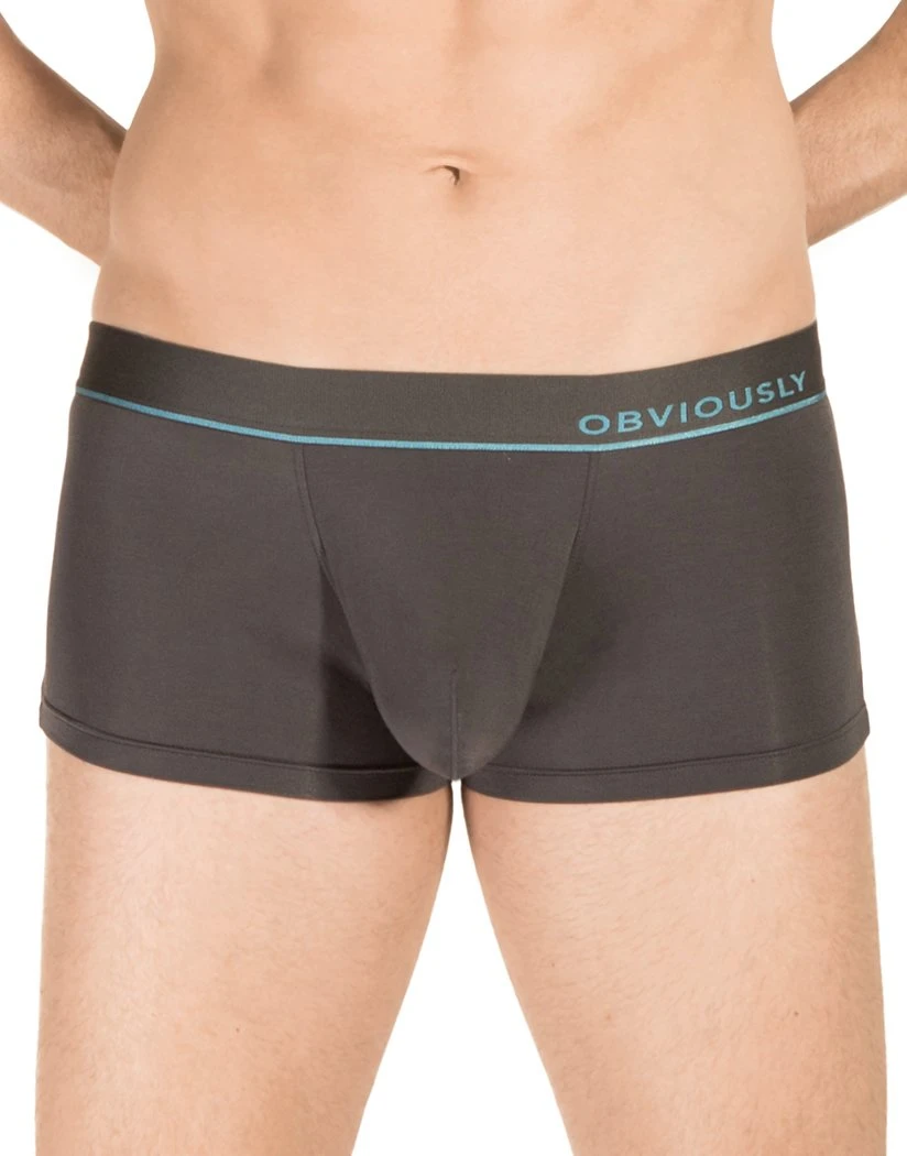 - Sporty elastic waistband with Obviously logo printed on side seam.
