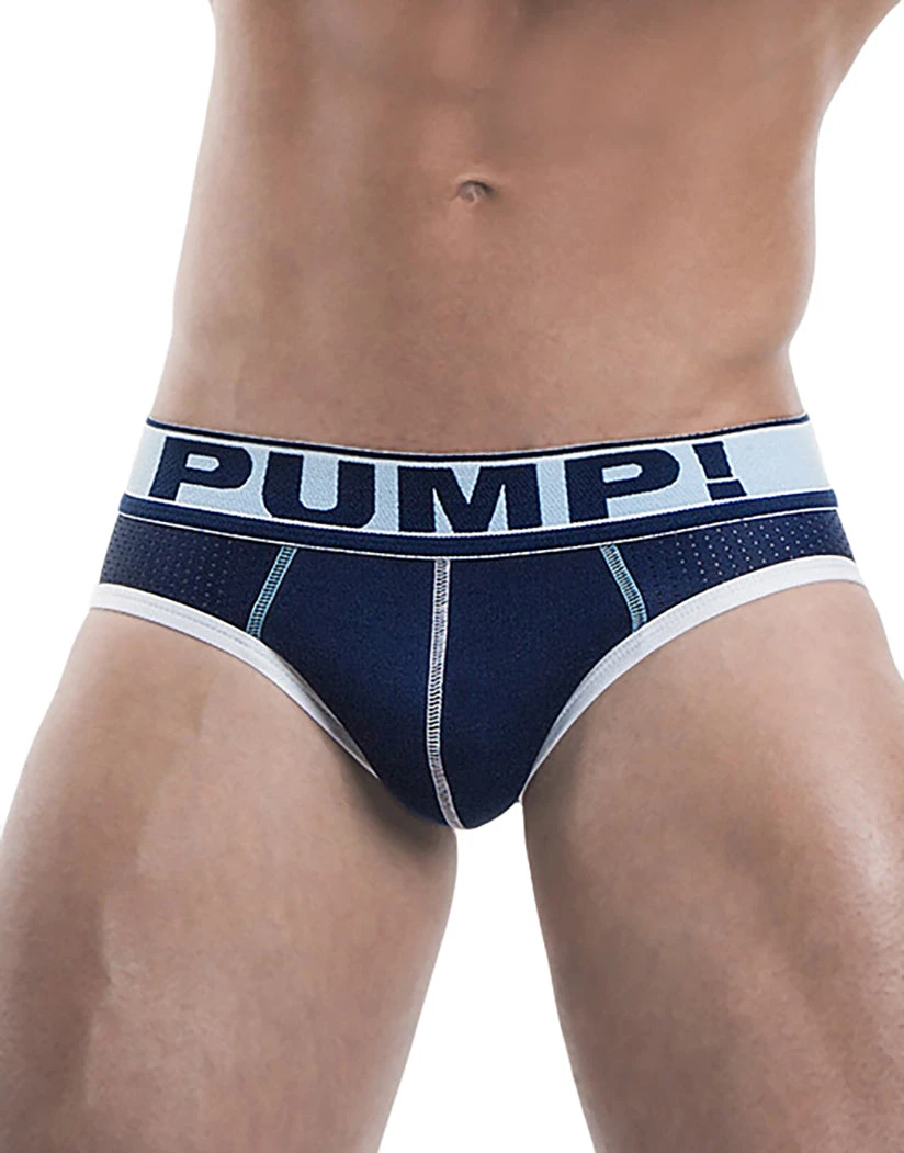 The Blue Steel Brief from PUMP! is the perfect pair of underwear for the every day, because it offers constant support and style. This brief has a low-rise fit, and features navy and white details throughout. The contour pouch is supportive, and made of a soft cotton, with a white vertical center seam, and white stitching. The body is constructed from a cooling and breathable mesh.
