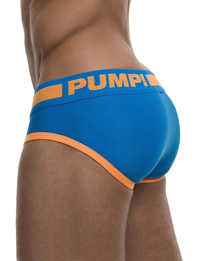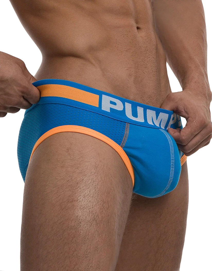 The Cruise Brief from PUMP! is the perfect accessory to pack in your bags before you set sail on vacation. This brief style comes with a supportive contour pouch, made out of breathable mesh. This provides you with ventilation and airflow to keep you feeling cool, dry, and comfortable. Featured on the contour pouch, is a vertical center seam, and orange stitching and piping. The Cruise Brief is made out of a smooth, stretchy fabric, for a sleek fit and finish. The wide, elastic waistband is made to lay flat against your body, without pinching or digging. Featured on the waistband, is the PUMP! logo in white block letters, and a thick, orange horizontal stripe.
