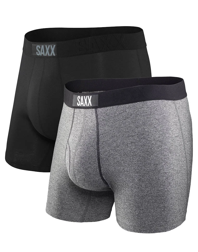 The SAXX Vibe 2-pack underwear are a boxer brief style with a mid-rise fit. These funky boxer briefs are the perfect pair for the man who is looking for classic comfort with a touch of style. The best part? They’re available in a convenient 2-pack. The patented SAXX contour pouch provides optimal support, while preventing movement and discomfort due to the interior mesh panels. The waistband is exposed and has moisture wicking capabilities. Featured on the waistband, is the SAXX brand name logo. The Vibe 2-pack boxer briefs from SAXX are also flyless and free of itchy tags, giving you smooth comfort.