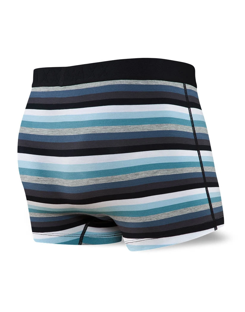 The Vibe Trunk in Miami Heather Stripe from SAXX is a super soft and well-fitting style, and falls at the natural waistline for a mid-rise fit. It features the SAXX patented contour pouch design, which has mesh panels around the sides to prevent chafing. It will keep you feeling supported and lifted, as well as cool and ventilated. The smooth, seamless seat and flyless front allows this trunk to lay flush against your body. The elastic waistband is exposed, with the brand logo on the front center. A tagless interior prevents any unwanted discomfort and irritation. The Vibe Trunk from SAXX will maintain its quality through many washes and wears, and will be the most comfortable underwear you’ve ever owned!