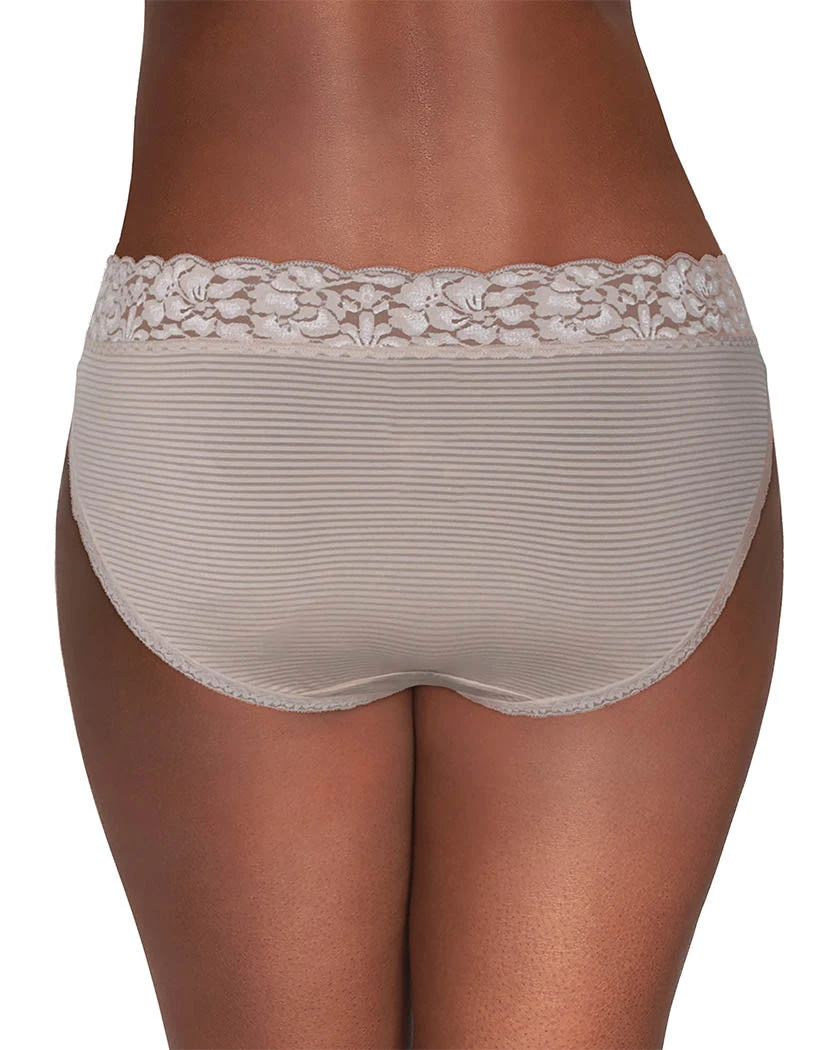 The Vanity fair Flattering Lace Bikini is made of ultra soft material. The fabric stretches to fit your body for perfect fit every time. High cut legs provide flexibility and a flattering silhouette. The high rise waist provides stomach coverage and fashion details with its wide lace waistband. This bikini has a full coverage rear, which is ideal for short dresses or skirts.