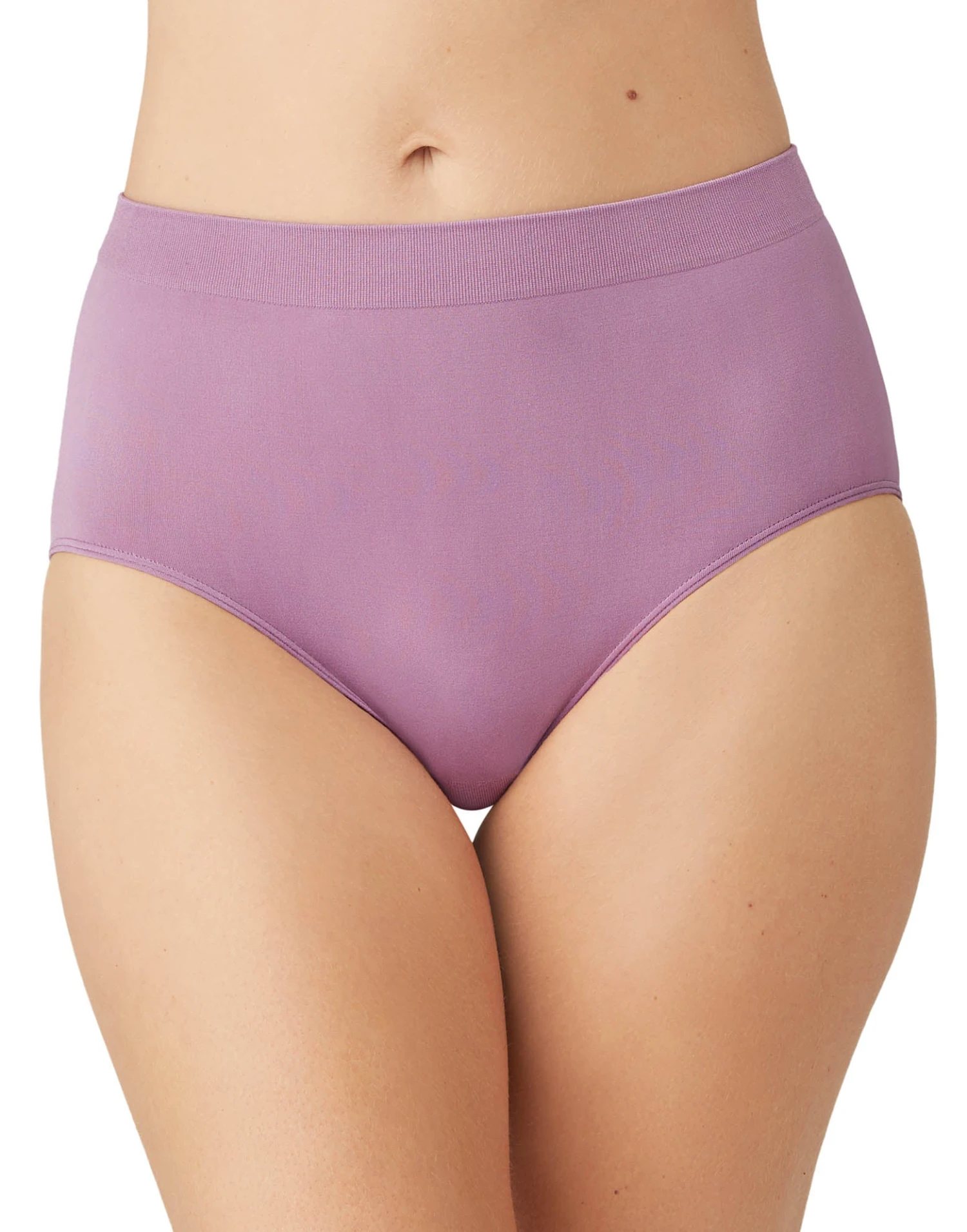 The B-Smooth Seamless Brief Panty from Wacoal is a luxurious everyday option. These seamless briefs feel wonderful against your skin while providing you with full coverage and long-lasting comfort. Made from a sleek nylon blend fabric, this panty also has a seamless construction to create a smooth look under clothes and prevent visible panty lines. To further enhance and ensure your comfort, the interior is tagless and the crotch is lined with a knit-in cotton panel.