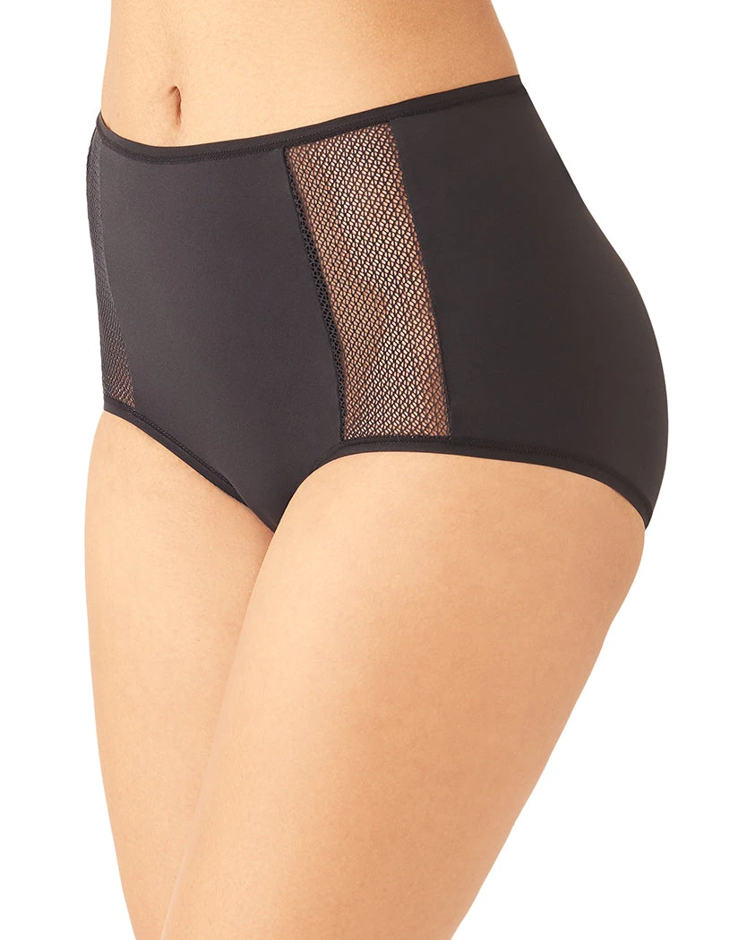 The Wacoal Keep Your Cool Daywear Brief is an innovative panty that keeps you feeling cool and fresh all day. This high-rise style falls above the natural waistline and provides full rear coverage for a modest look. The star of the show is lightweight, cooling fabric designed to work even in your most stressful situations. Mesh side panels provide additional breathability, so you can feel confident no matter what. Helpful elastic on legs and the waist prevents unwanted movement, making these briefs ideal for everyday wear.Â