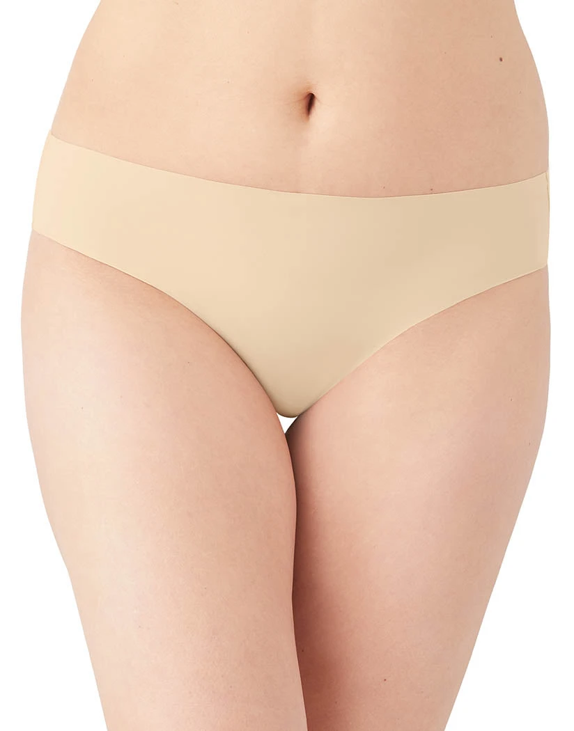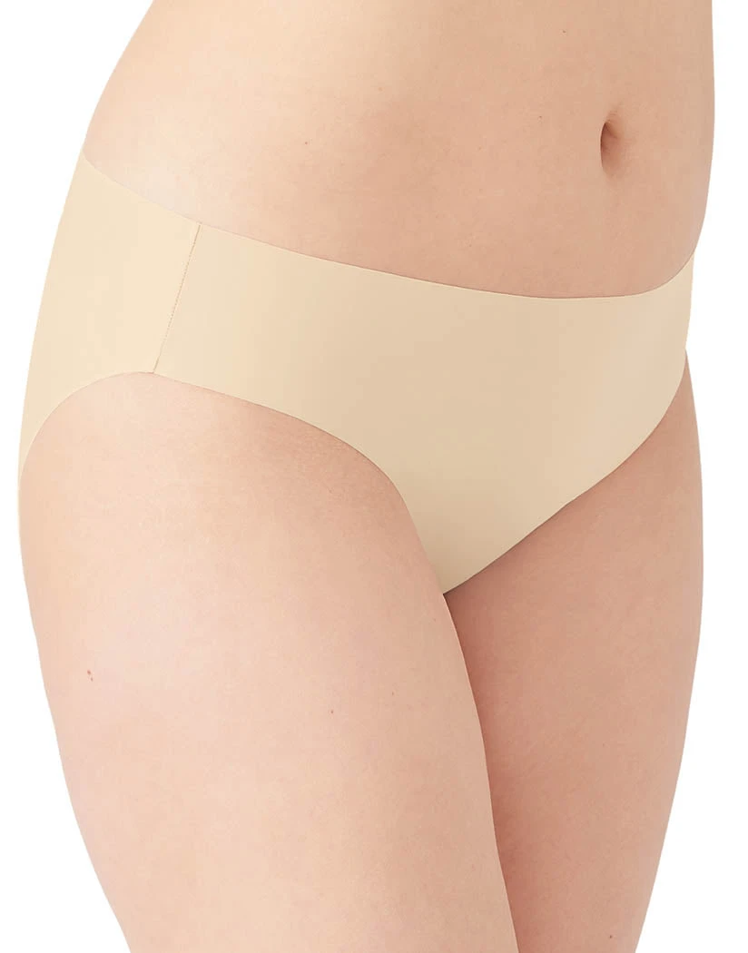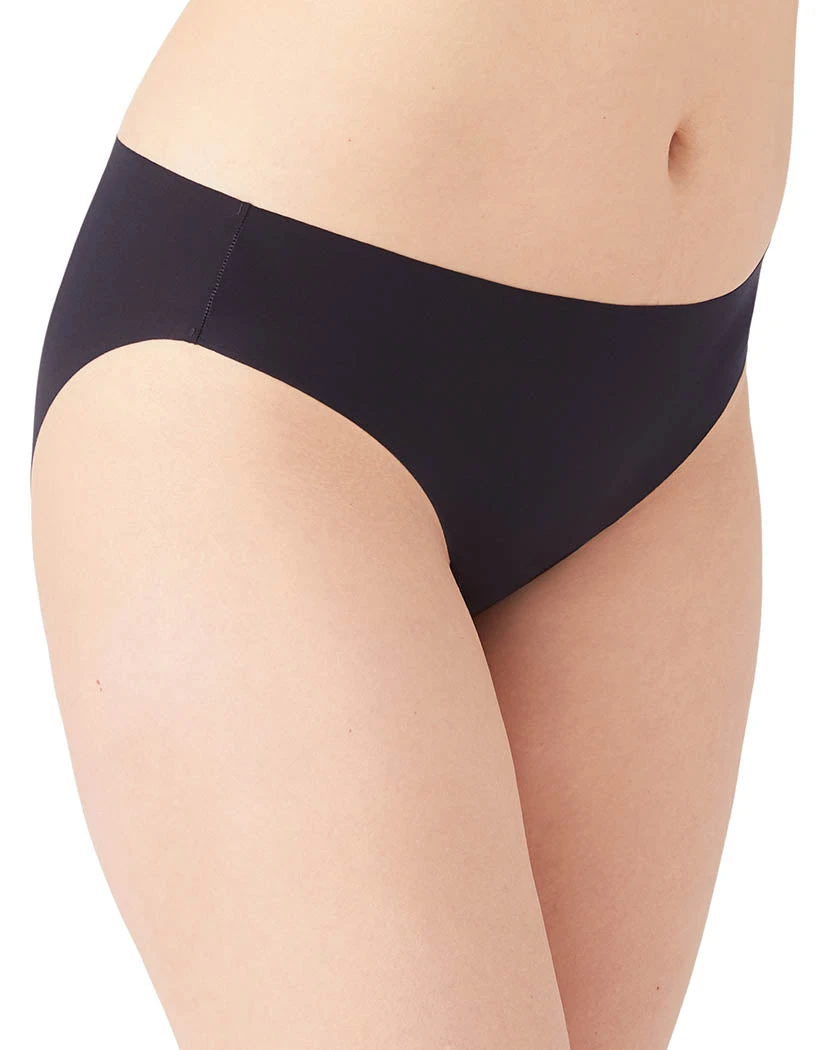 The Wacoal Perfectly Placed Bikini is a sleek style. This bikini is made of lightweight stretch fabric. This material has the technology to cling to your body without riding up or falling down. This panty is low-rise and uses the fabric design to hold you up without a waistband. The moderate coverage rear and hi-cut legs provide a flexible, comfortable fit. This bikini is elastic-free and completely eliminates panty lines on both the front and rear for a fit and feel you’ll love.